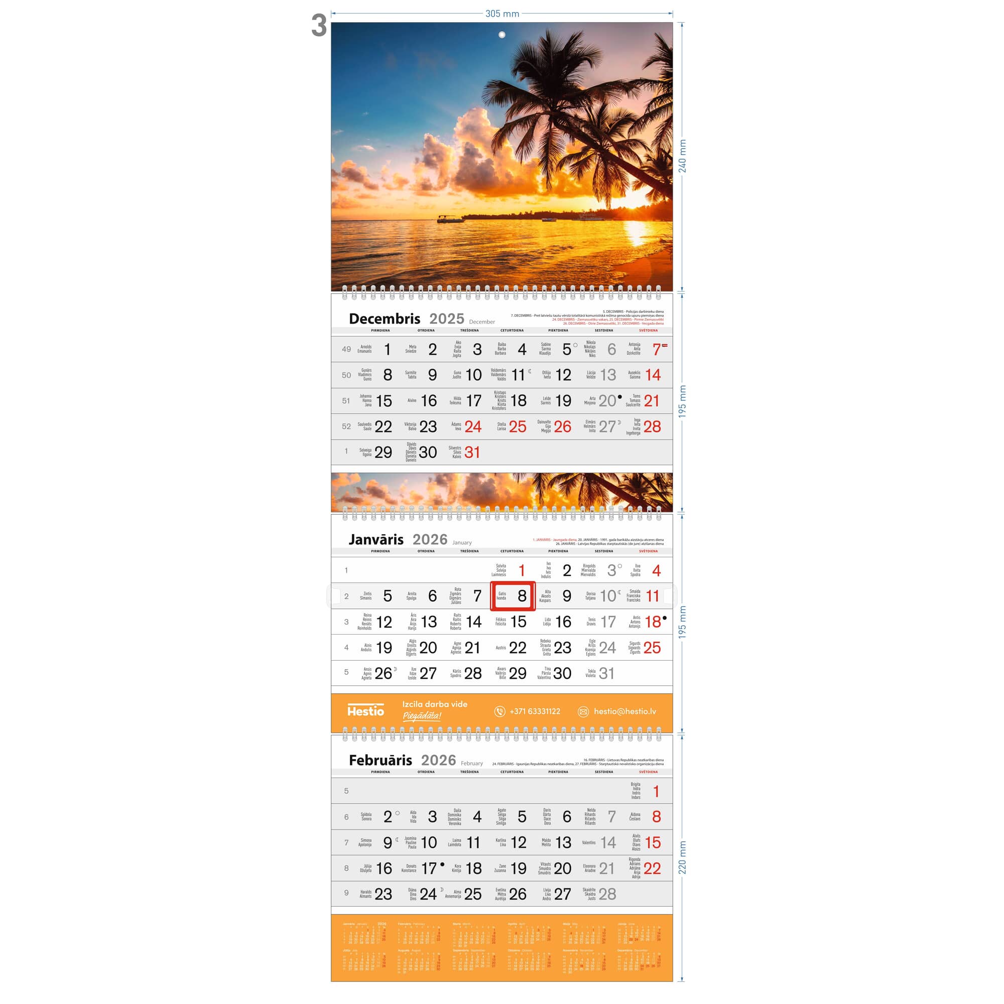 • Trīsdaļīgs sienas kalendārs